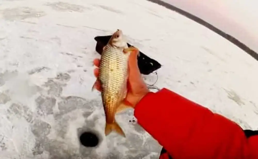 Кивок согнуло, леску с силой натянуло, того гляди, и удочка из рук прямо в лунку улетит! Что за чудище позарился на мою мормышку. Случай на зимней рыбалке про крупную плотву-сорожку.